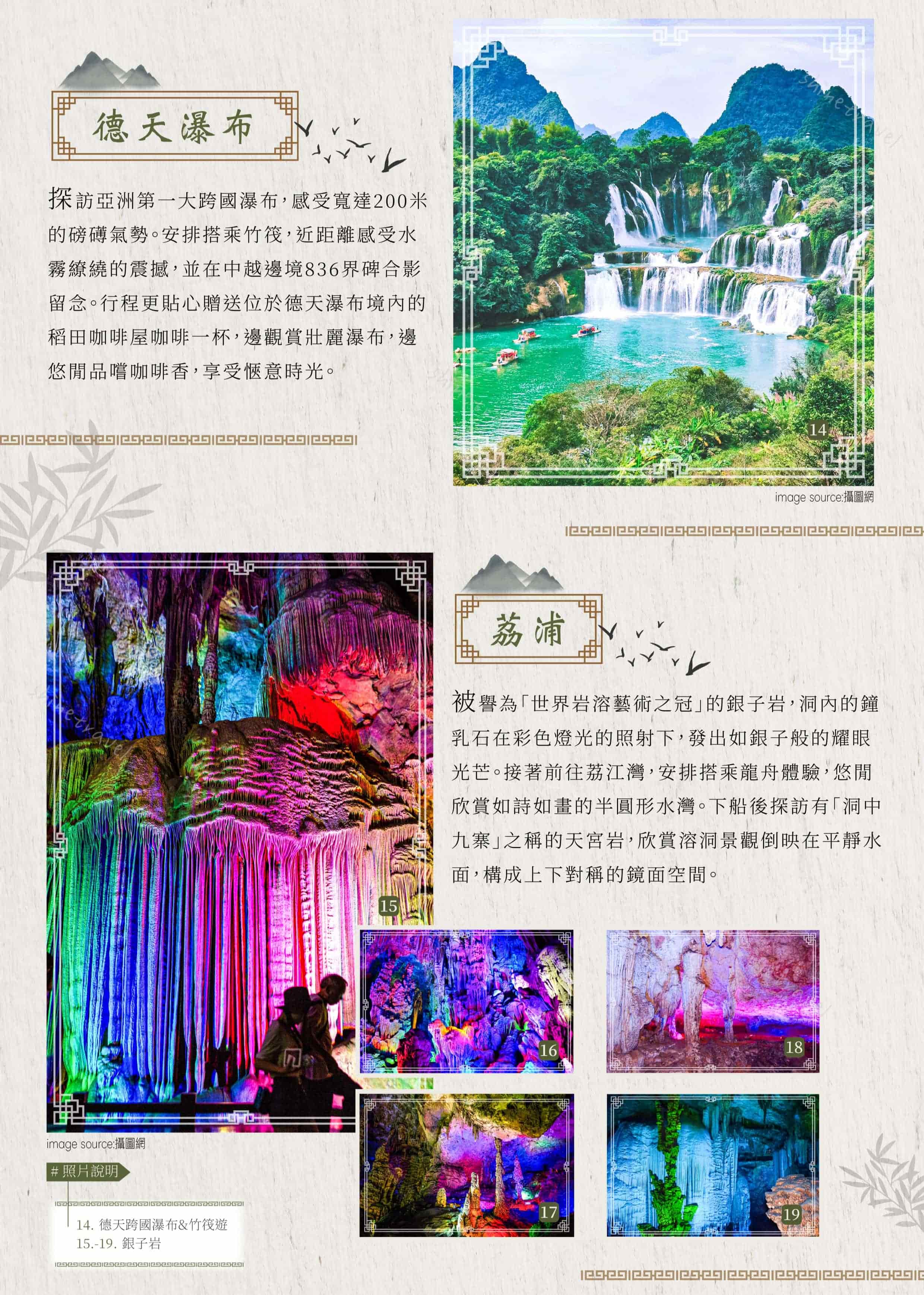 灕畫山水~桂林灕江山水.陽朔遇龍河竹筏.銀子岩.德天瀑布.靖西鵝泉.印象劉三姐.中越風情.文化交流8日【長榮航空】
