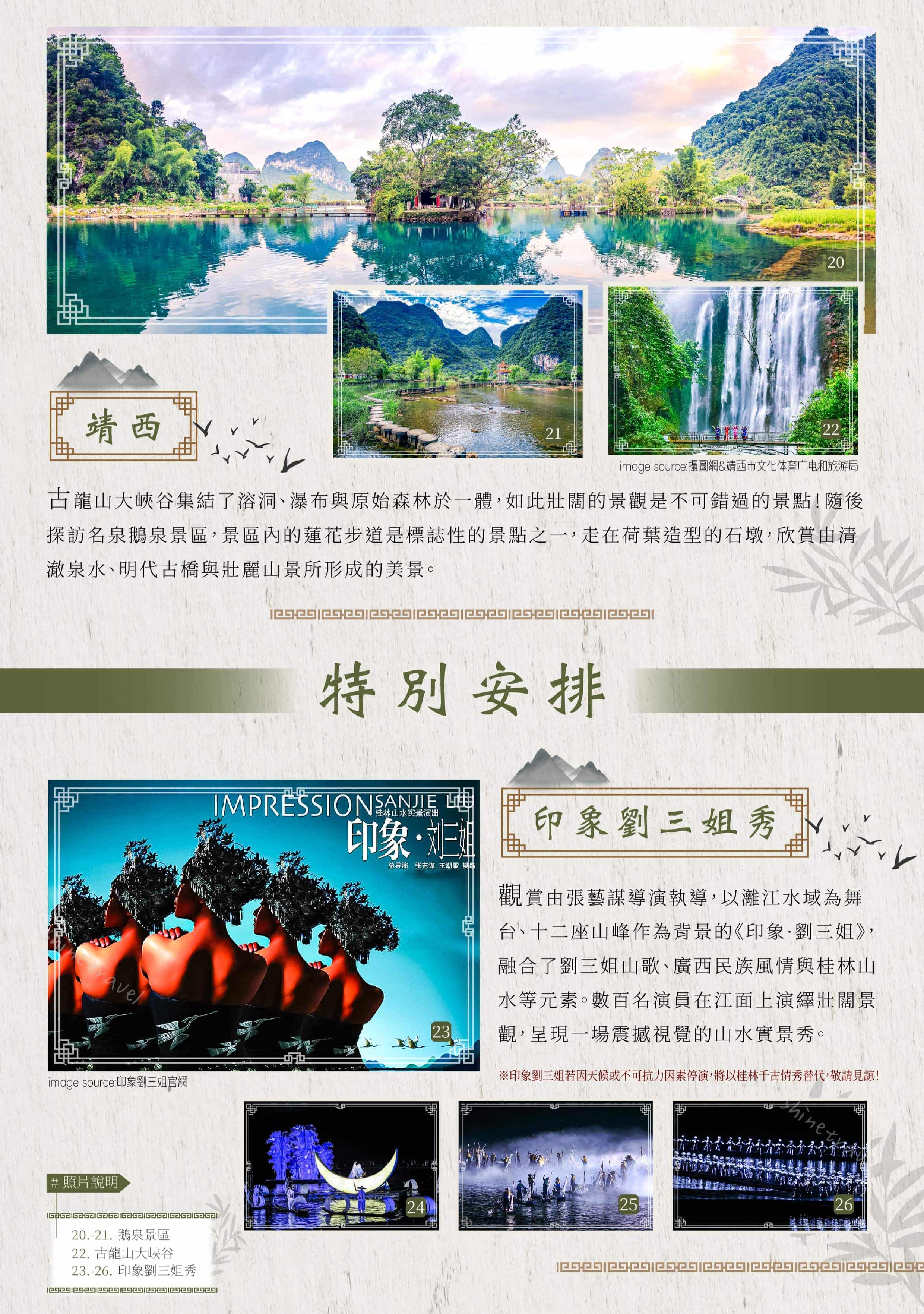 ※備註說明:印象劉三姐若因天候或不可抗力因素停演,將以桂林千古情秀替代,敬請見諒!!