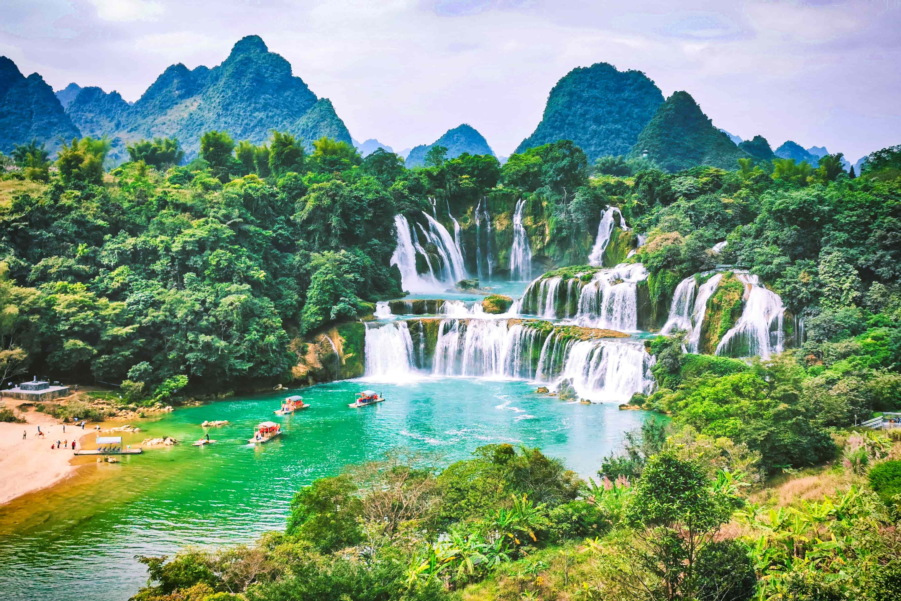 【德天瀑布景區】瀑布起源於廣西靖西縣歸春河,歸春河是中越兩國的界河,它流入越南又流回廣西,經過大新縣德天村,最後從60餘米高的斷崖三級跌落,形成了德天瀑布的磅礡景觀。